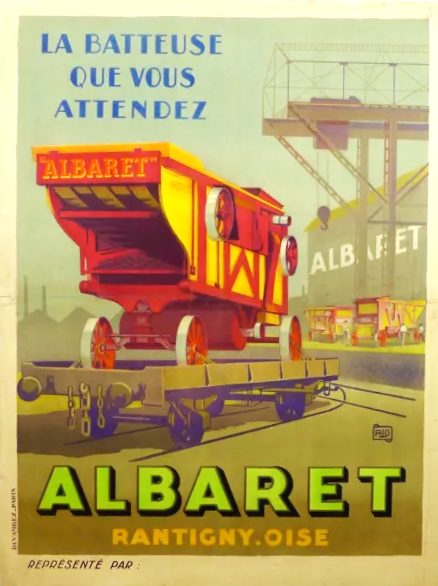 Les établissements Albaret, fondés en 1845 par Mr Duvoir charpentier à Liancort (60), furent l’un des premiers à construire la batteuse en France. Lui succéda Bernard Albaret, fondateur de société Anonyme des Anciens Établissements Albaret à Rantigny dans l’Oise, constructeur de machines agricoles et à vapeur et de compacteurs depuis 1860.